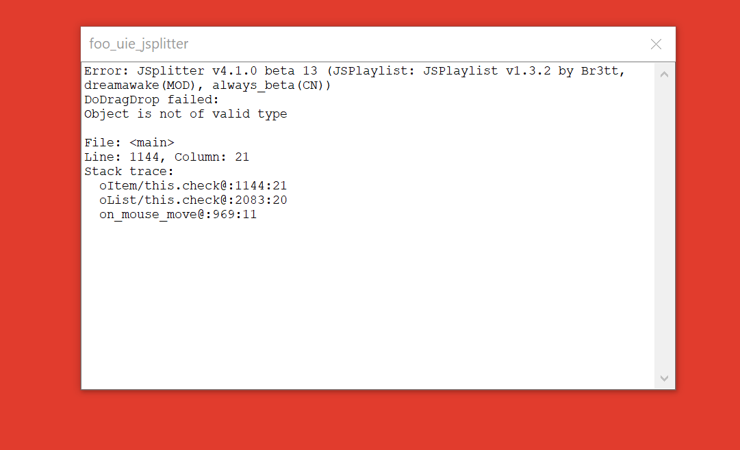 I sent you a private message with a minimal portable package that can reproduce the problem (based on Alpha 13). You only need to add the music directory to the playlist and do not play it. Then when switching between A.Test1 and A.Test2, the crash will occur. The problem lies in the code of the Properties panel. In addition, I have also attached the fixed Properties.js - Fix file.