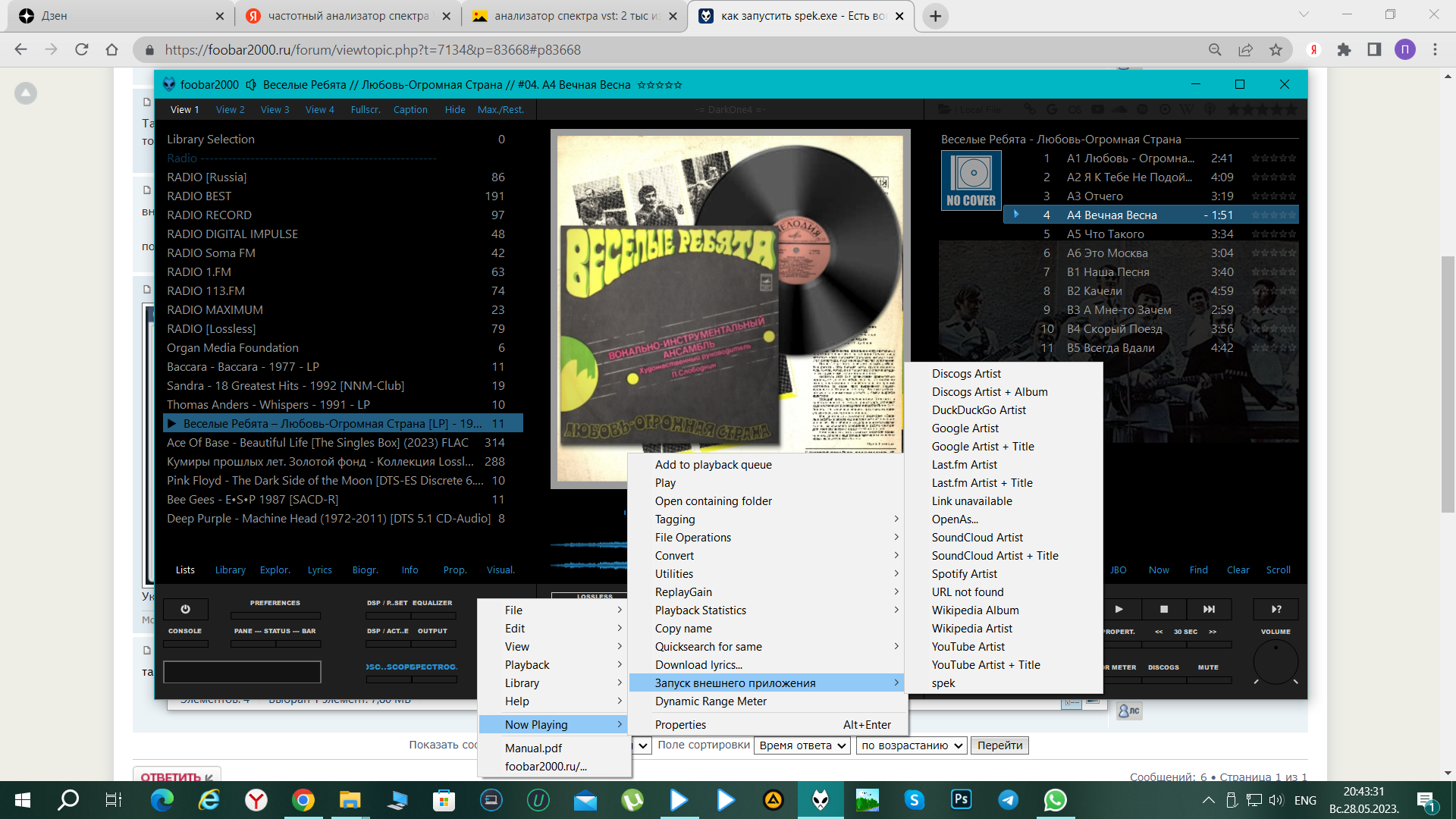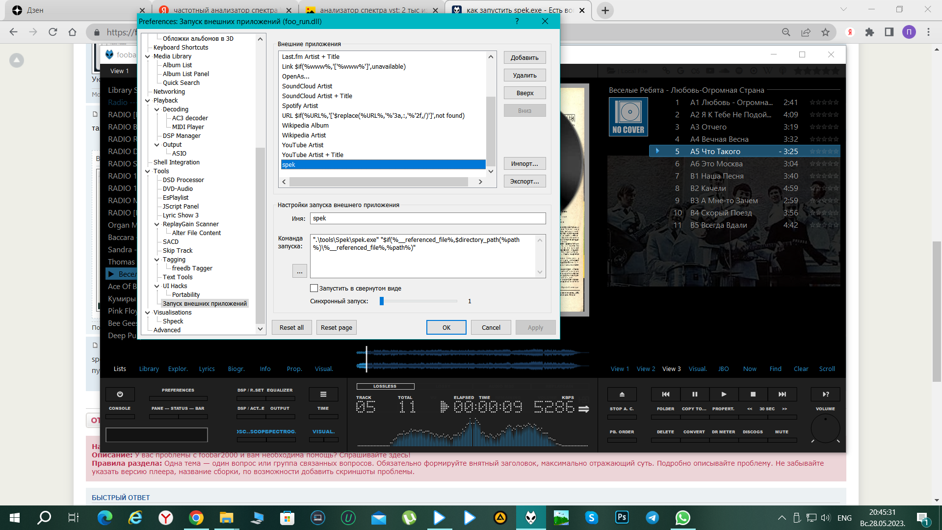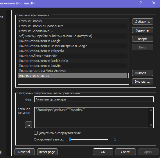 https://github.com/BtbN/FFmpeg-Builds/releasesСпектрограммы сохраняются в папке профиля фубара в js_data\spectrogram_cache. Удалять их можно прямо через меню панели (то же, через которое вызываются настройки спектрограммы) - пункт Cached images.