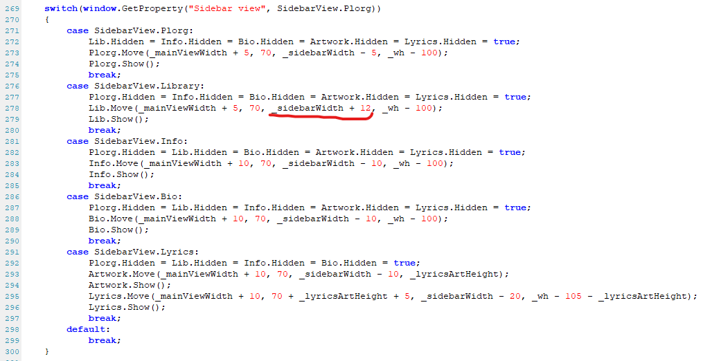 2) Подчеркнутое это ширина панели фонотеки, вместо +12 поставьте чуть больше