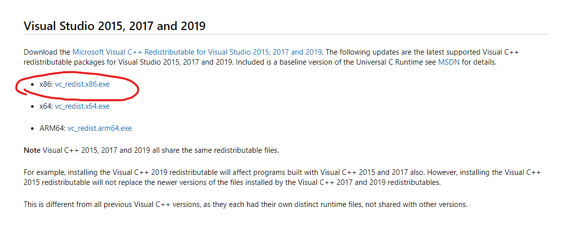 Требования к запуску сборки: установленные библиотеки Microsoft Visual Studio 2015