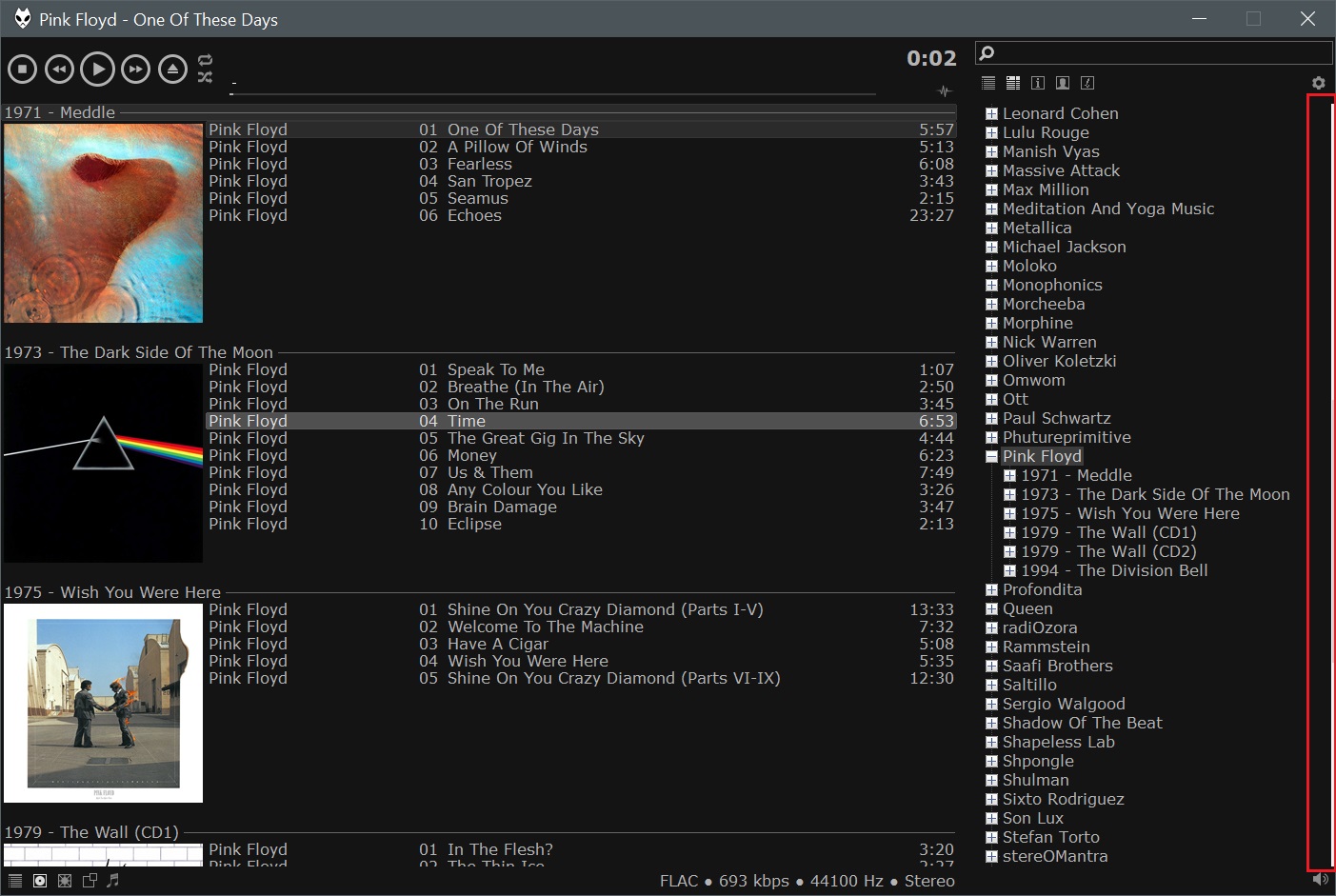 1) "Плоский" режим с фоновой обложкой - это просто список треков с разделением по альбомам или по папкам (если прилетели из Проводника)