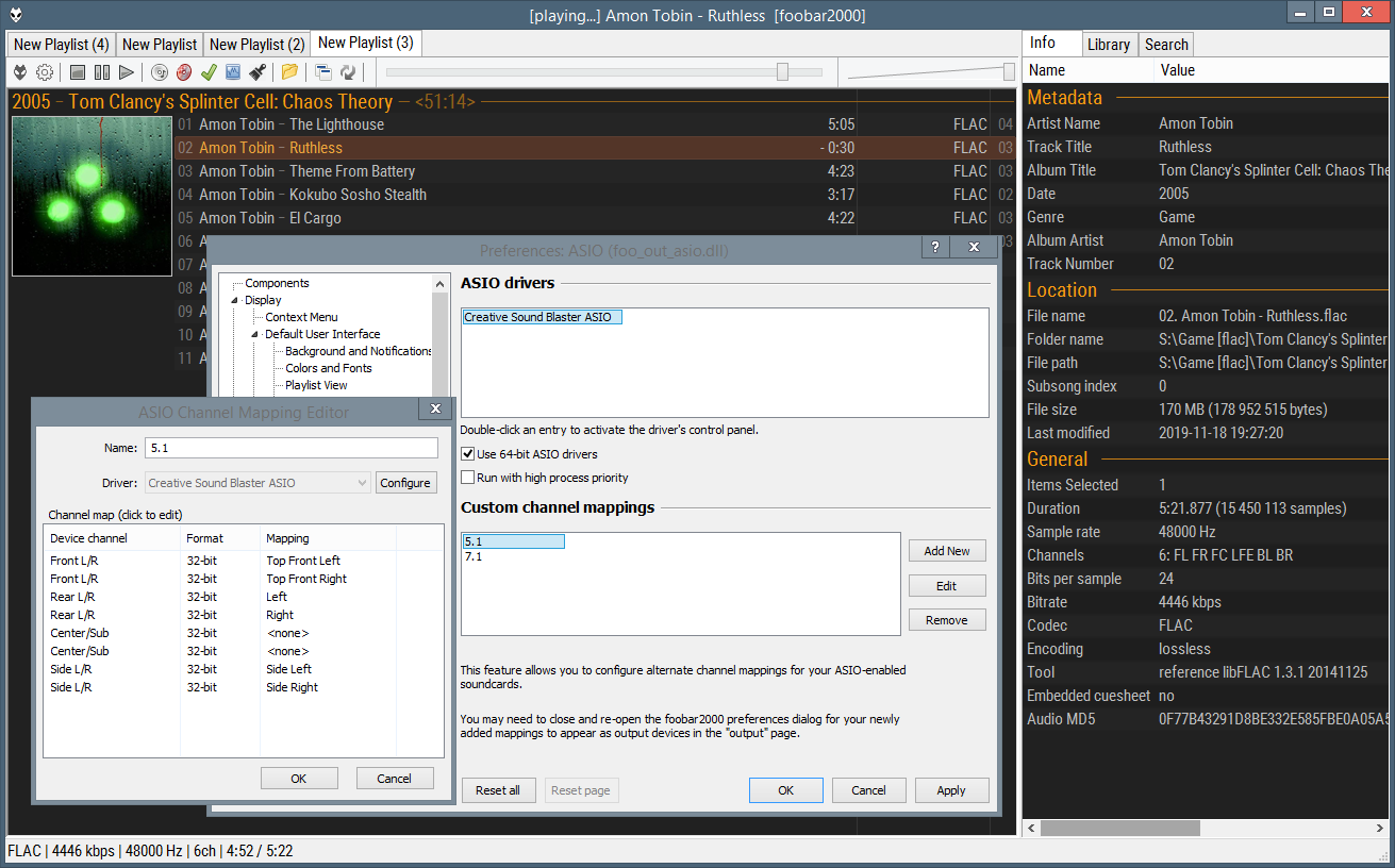 Для возможности вывода не только видео, но и чисто аудио (в сыром виде) я поменял мать и ресивер (старый не обрабатывал "тяжёлый звук). Сейчас с матери по HDMI в монопольном режиме (включен в виндовом микшере), в фубаре вывод по wasapi, обработка в компе аудио потока не производится, всё что имеем по звуку в режиме пасстру (напрямую) идёт в ресивер. Оптика или кокс только для обычного многоканала (DTS,AC3,DD), всё что "потяжелей" уже не пролезет по ним.igor:я раньше думал,что HDMI для видео,а для звука оптика или коаксиал