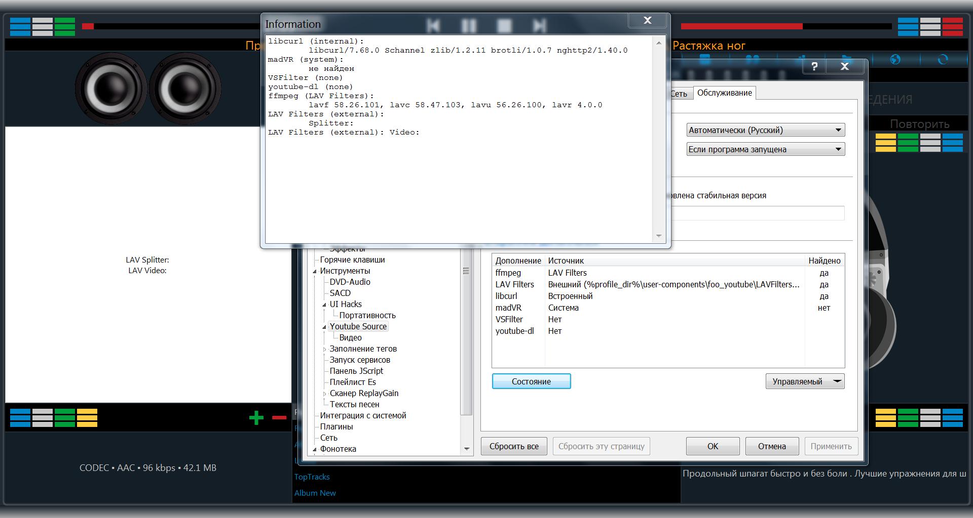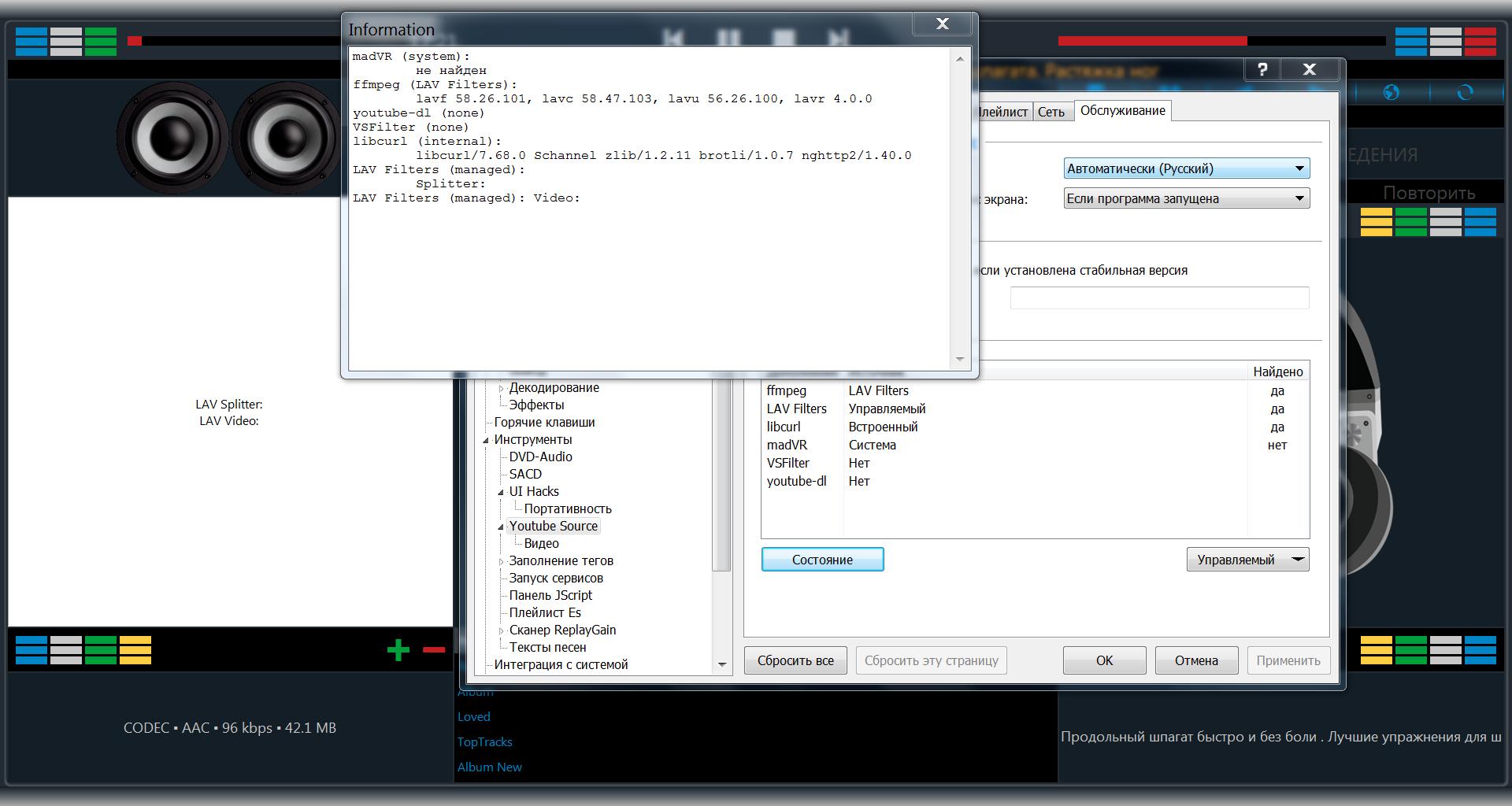 б) Фубар 1.3 (1.5), YouTube Source начиная с 3.0, LAV Filters 0.70.2 (0.74.1) - YouTube Source видит, не идентифицирует LAV Filters 0.70.2 (0.74.1), картинки нет
