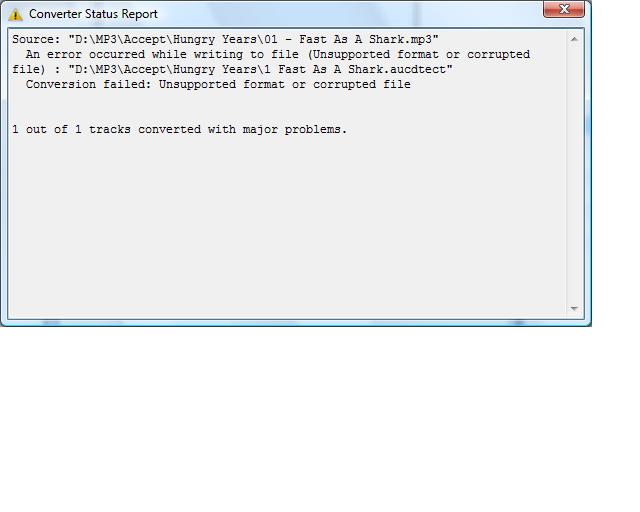 2) запусти проверку на одном мп3 файле и покажи ожибку тут. Я так понял выскакивает консоль с сообщением? А само окно foocdtect появляется и идёт ли процесс декодирования?