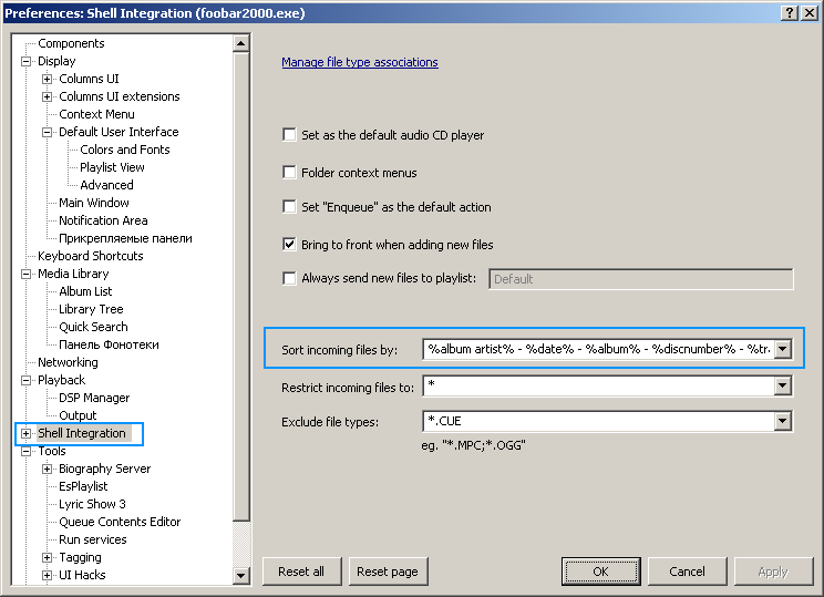 Ссылка на foobarWiKi: ELPlaylist (foo_uie_elplaylist.dll)