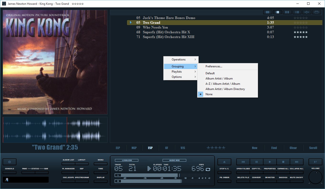 1. Основные изменения только в версии DarkOne_4_JS_v1.5.2. Обновлена версия плеера v1.5.2.0 и компонент foo_ui_columns-1.4.0. На панелях управления добавлены новые функции для кнопок, режим быстрого переключения предустановок DSP и выбора звукового устройства.