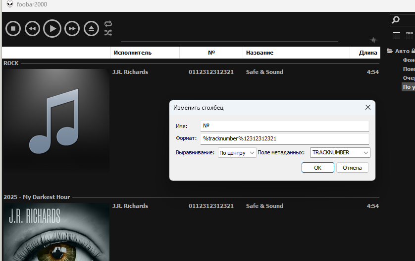 HCN:"%tracknumber%" он почему-то не распознаёт, дублирует первые буквы и зачем-то подставляет в список.