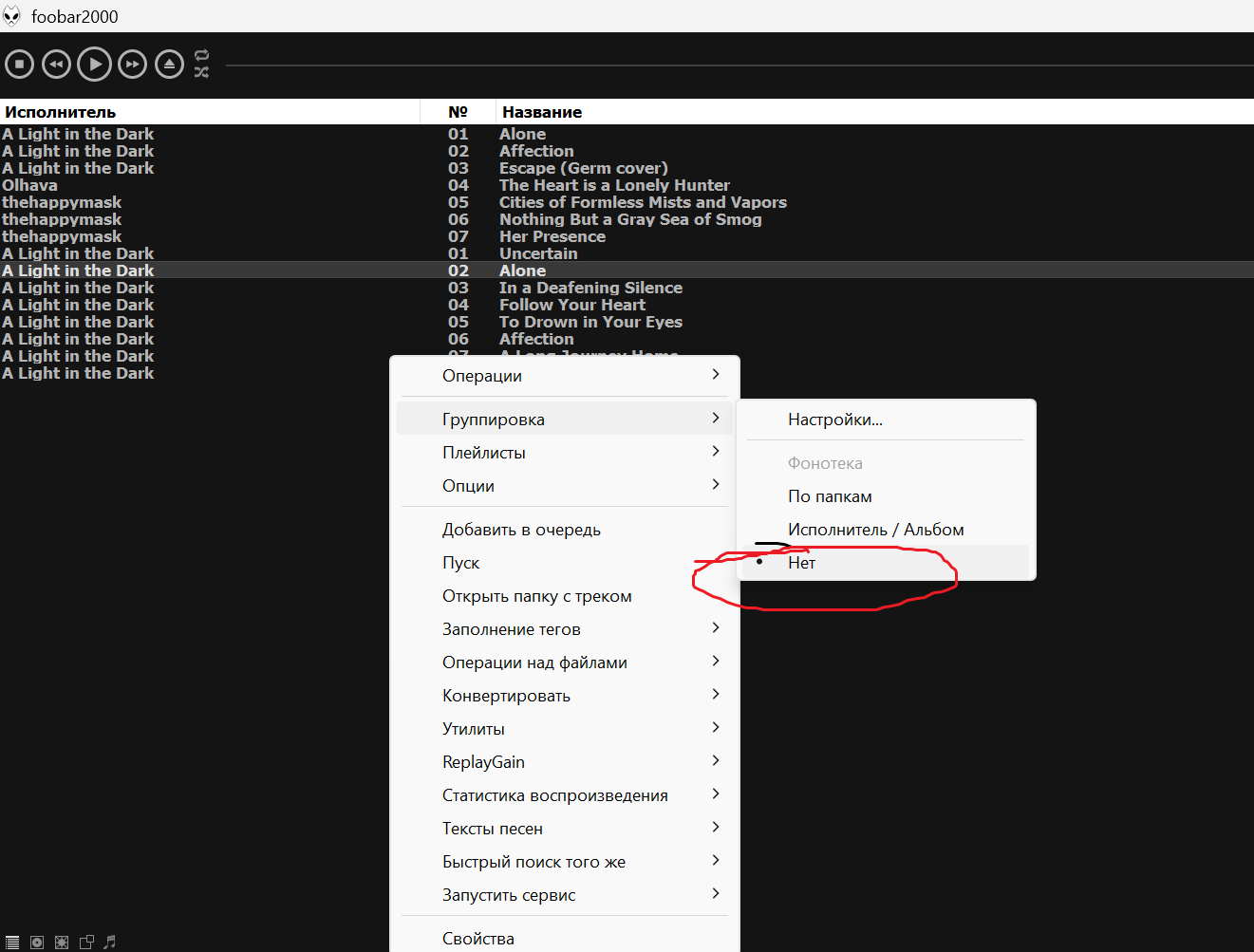 Вот на Вашем скрине, вдобавок к нужному, он ещё отображает альбом, обложку, жанр - я попытался это убрать, создав новый пресет, прописав "%tracknumber% - %artist% - %title% - %length%". Получилось неполноценно, да ещё и без выравнивания по всей странице окна плейлиста.