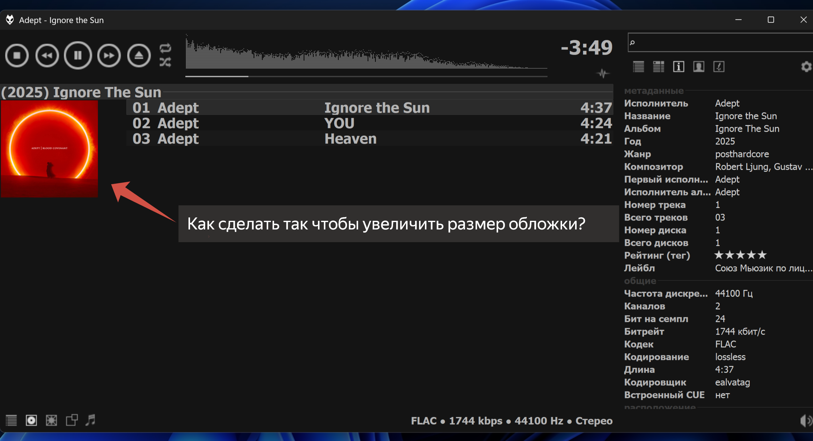 "%tracknumber%" он почему-то не распознаёт, дублирует первые буквы и зачем-то подставляет в список. Да и смысл в панели фонотеки (справа), если управлять ей невозможно, всё равно появляется плэйлист фонотеки (слева)? А убрать всё это, сделав одно полноценное окно со стандартными столбцами, которые по желанию можно убрать или добавить, невозможно?