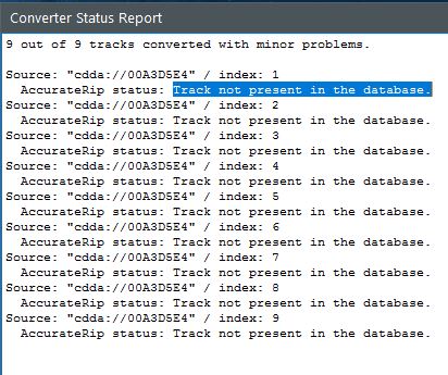 1 out of 1 tracks converted with major problems.