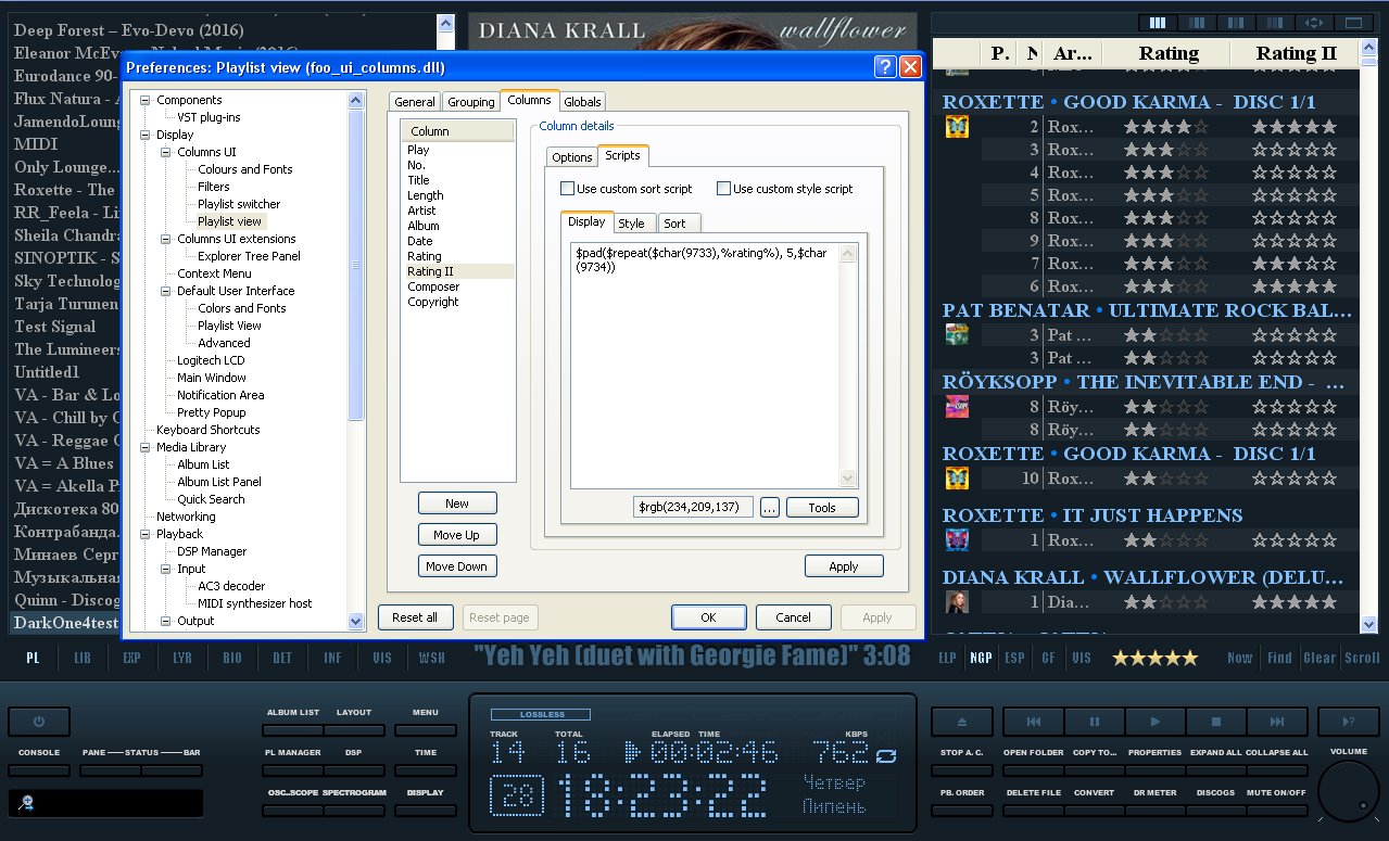 1. В версии DarkOne_4_JS_v1.5.6_final откат к предыдущей версии Columns UI 0.5.1 (foo_ui_columns.dll)