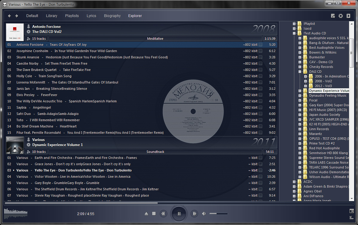 Изменения: foobar2000 v1.3.5, кодек qaac, скины без кнопки внизу и немного измененными скриптами