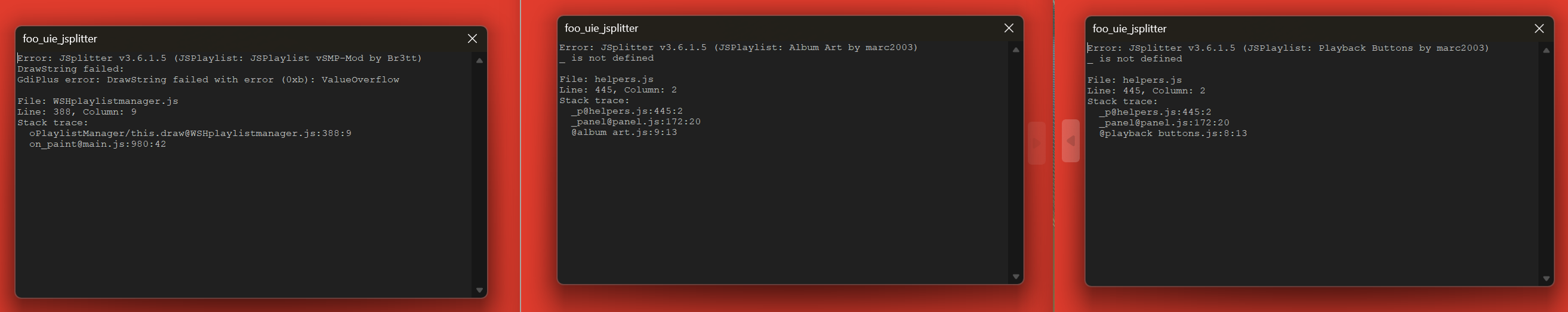 Majestyk:This is not a JSplitter bug. It's a foobar2000 bug. It's been around for along time and I don't think it's ever been reported. I have various Darkone mod themes dating back to 2015, using Panel Stack Splitter, that have this bug. I was surprised to read this, I thought only I knew about it. :smile: