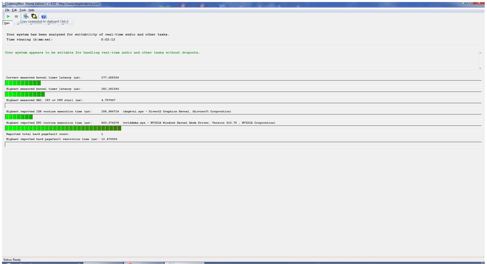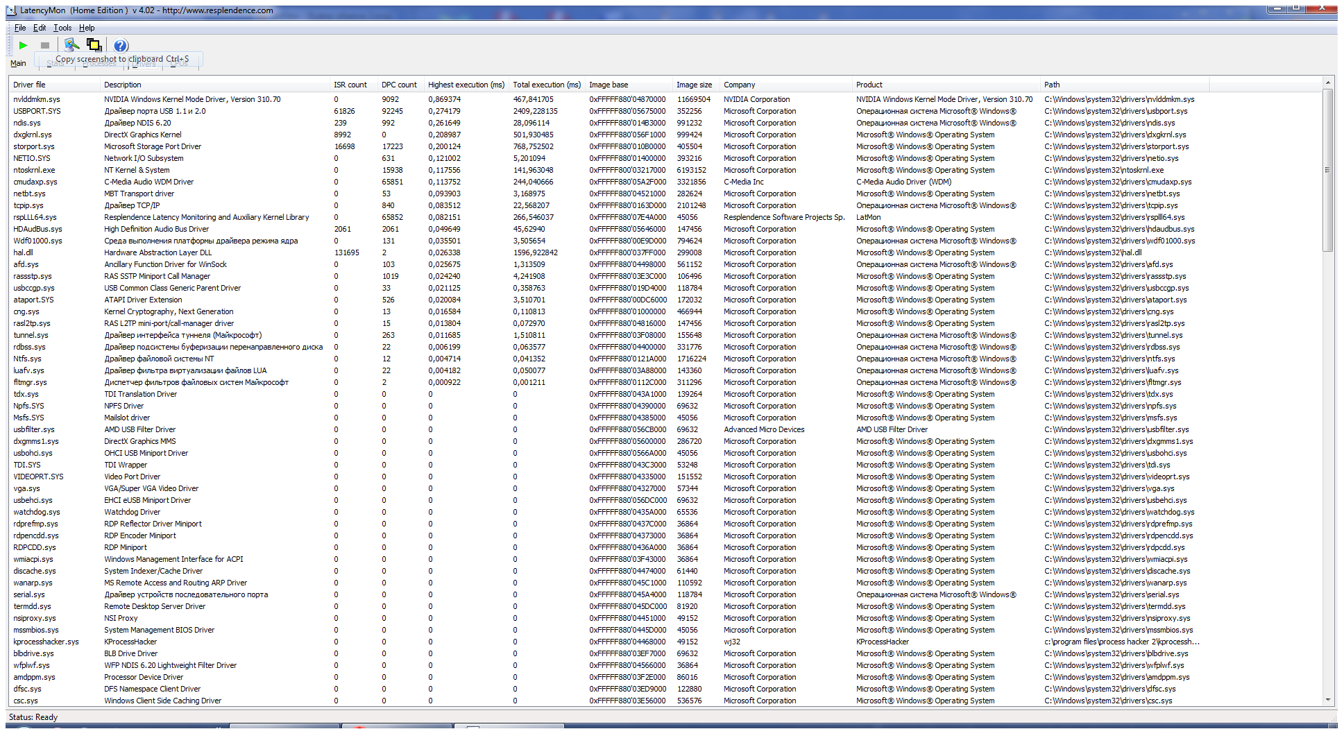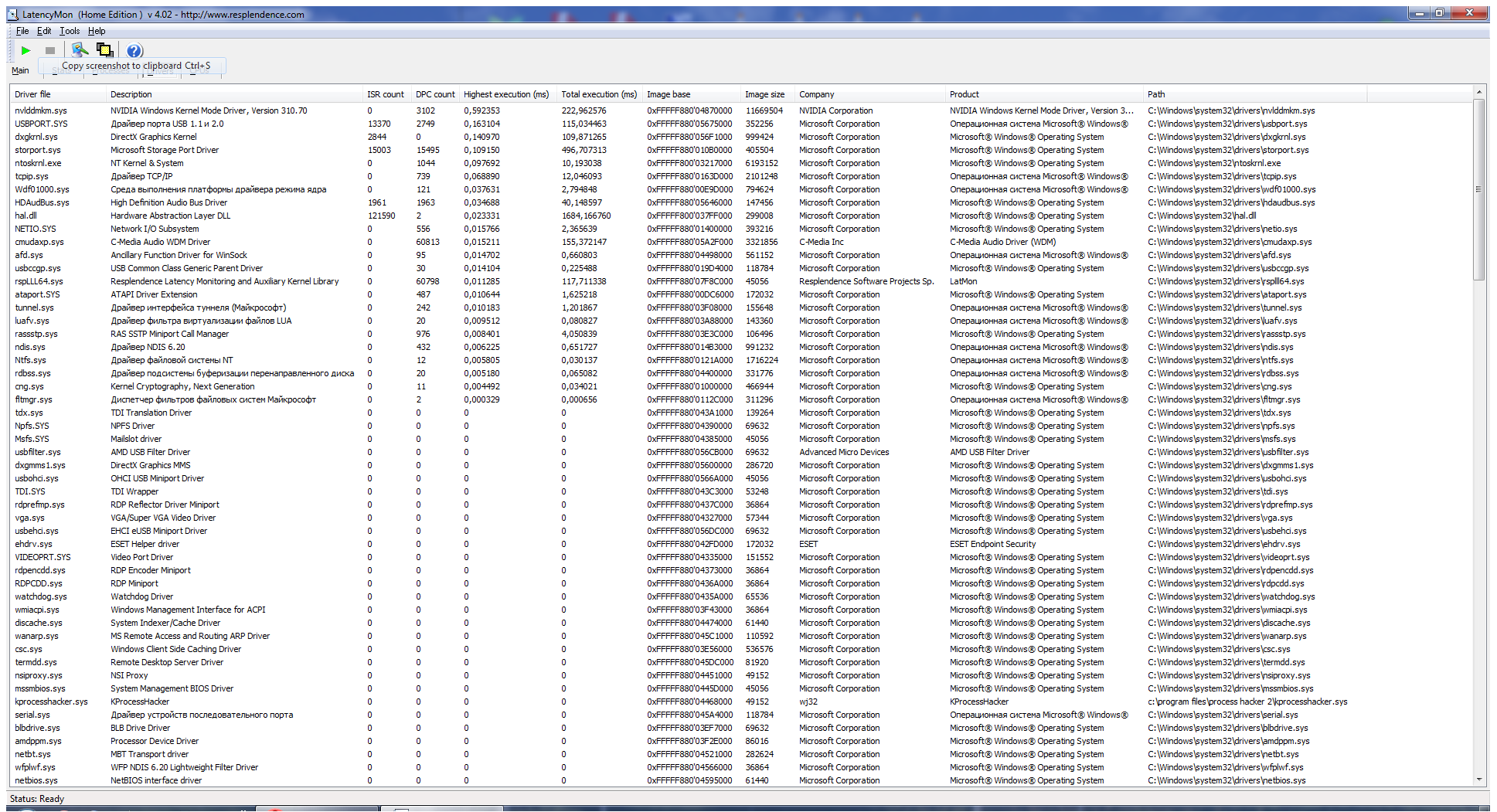 А, ну да. Плата PCI, а то для usb ещё одна утилитка есть. Но за кадром осталось, на каких же частотах песочит? Меня, например, доставала трескотня на 176,4 и 192 кгц. На 96 и ниже никаких проблем с asio не было ни на ноуте, ни на стационаре. Из наиболее вероятных причин в твоем случае могут быть драйверы видеокарты и управления энергопотретреблением процессора. Перед проверкой обязательно отруби wi fi, блютуз и сетевой драйвер. Антивирус тоже желательно отключить. Запусти latency monitor и смотри, с каких драйверов прут наибольшие задержки и в каких процессах ошибки страниц. Скрины закладок main и drivers в студию :yes: