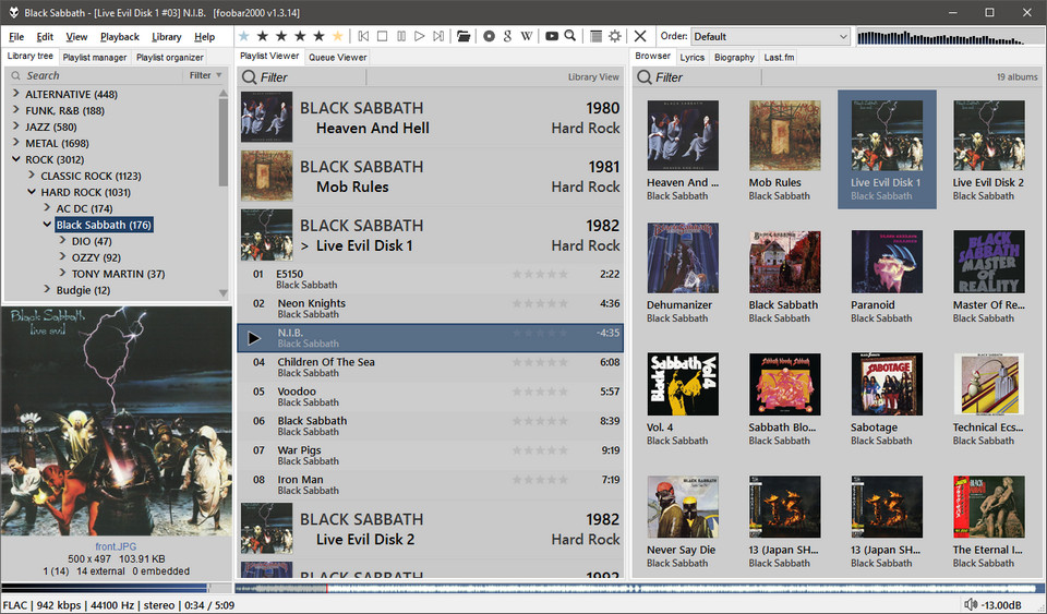 Остальные функции foobar2000 (Album List, Search, Lyric Show Panel) вызываются комбинацией клавиш или через меню.