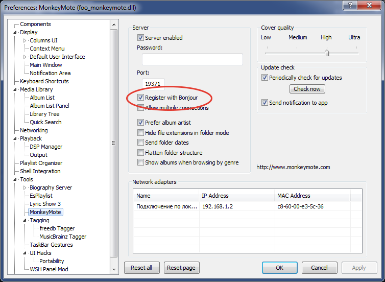 Обнаружил такую особенность, для корректной работы MonkeyMote 4 foobar2000 на iPhone требуются Службы печати Bonjour для Windows или iTunes. Без них MonkeyMote не находит автоматом foobar2000 на PC, но может подключаться к foobar2000? если прописать IP вручную.