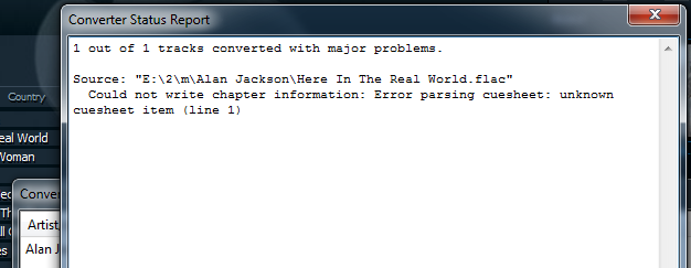 Что за ошибки? Никаких изменений с 1.2.9 в конвертере не произошло. (Кроме опции RG)В последней версии Foobar(а) начали "вылазить" ошибки при конвертации. А на 1.2.9 - все нормально.