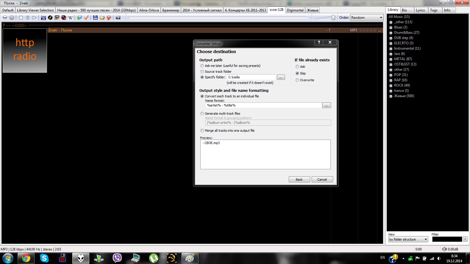 При проигрывании интернет радио информация о группе и названии трека отображается в названии плеера и самом окне плеера, при записи записывает в один файл с названием радиостанции