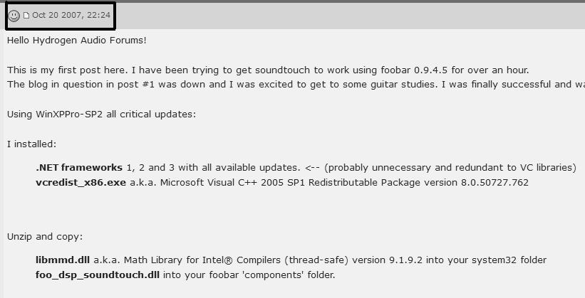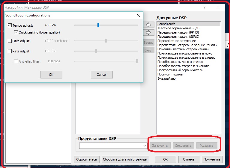 Кстати говоря, плагин foo_dsp_soundtouch давно не обновлялся и на сегодняшний день в foo_dsp_effect используется более современная версия библиотеки soundtouch.