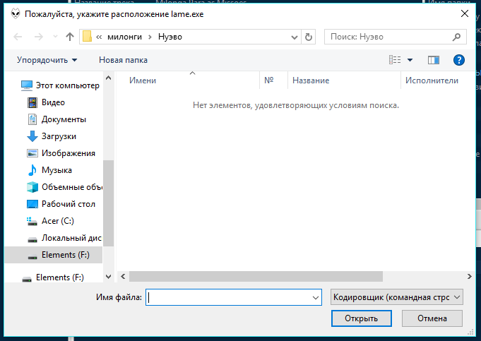 Можно подробнее? Пожалуйста. Я правой кнопкой по файлу, там меню как на рисунке, выбираю такой формат как и был - mp3 - потом появляется табличка "нет элементов ..." и т.д. И что дальше?