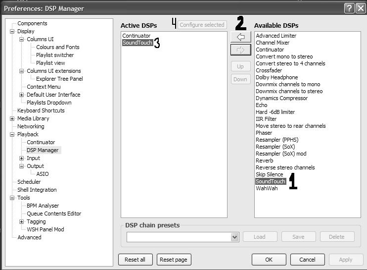 1. Добавляем в Активные DSP этот компонент и настраиваем скорость воспроизведения, добившись нужного результата сохраняем как Предустановку DSP, потребуется при конвертации.