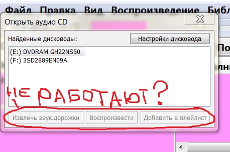 Bob, В дисководе SACD при открытии дисковода ноль файлов,в свойствах диска ноль занято, ноль свободно! И ещё не работает: файл-->открыть аудиоCD пример на рис. Активация списка песен в проигрывателе ,через перетаскивания отмеченного дисковода в проигрыватель!