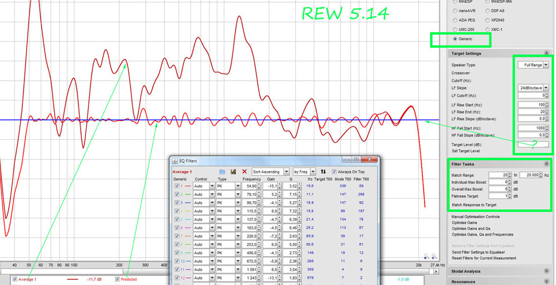 В последнеи версии REW еквалаизер GENERIC дает хорошии результат , побольше фильтров , но довольно точно.