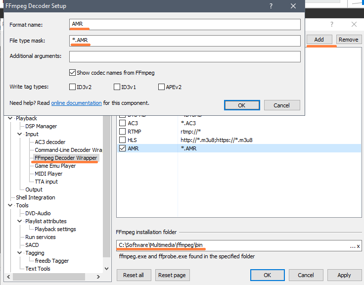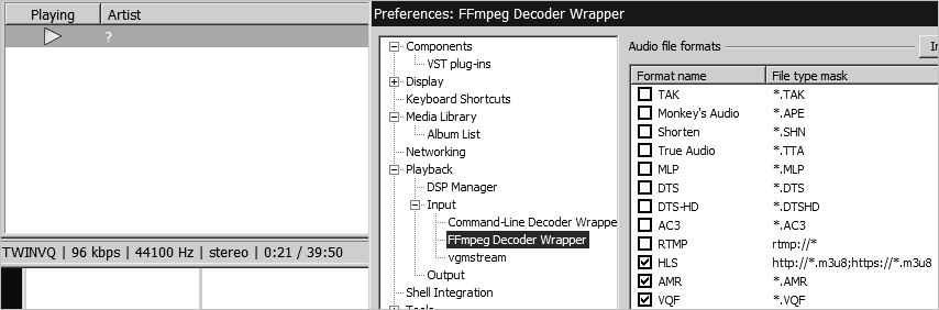 FFmpeg Decoder Wrapper (foo_input_ffmpeg) и настраивается как на картинке.