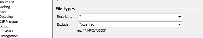 Выбросить всё в 2-х местах из исключений (в шелл и в библиотеке), установить foo_cuefilter и при правильном CUE всё должно работать.