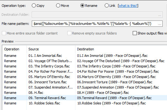 $ascii(%tracknumber%. %title%)Функция $ascii заодно уберёт и кириллицу. Так что лучше использовать $ansiGeorge Smith:А функция $ascii уберет всякие бяки вроде ✨ ☝️ ⚖