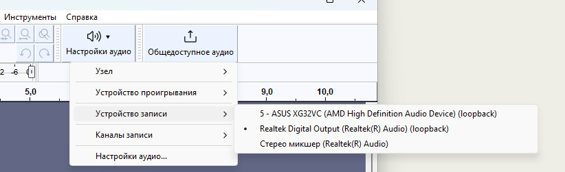 Играет музыка, Youtube или плеер на компьютере. Включаю Audacity на запись. Сохраняю в *.wav.
