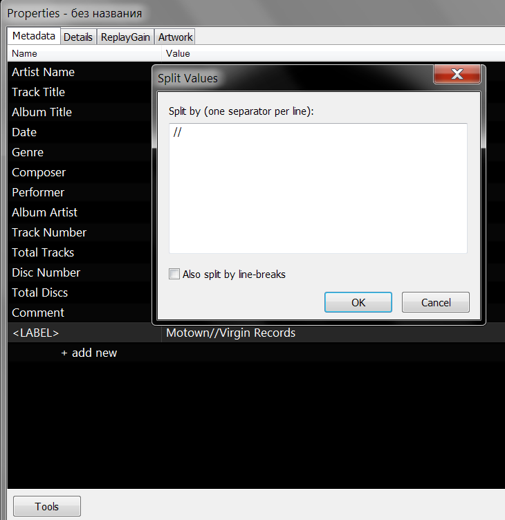 допустим, в аудиофайле создан тэг Label и прописано значение Motown//Virgin Records и нужно, чтобы сам фильтр отображал не Motown//Virgin Records, а выводил отдельные строки для фильтрации для Motown и Virgin Records. Как это можно реализовать?